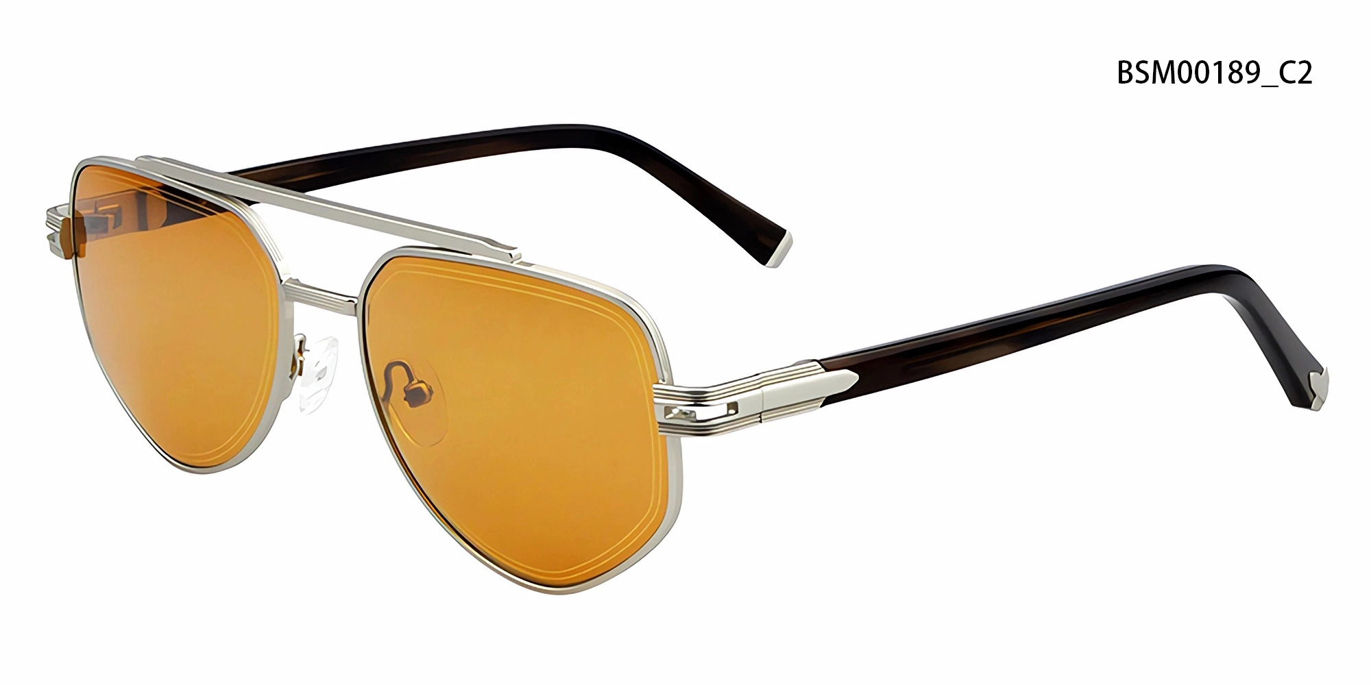 A modern take on the classic aviator silhouette, this frame features a sleek gold metal construction with a bold top bar. Paired with dark gradient lenses and refined temple tips, it delivers a sharp, high-impact look that blends timeless style with contemporary detail.