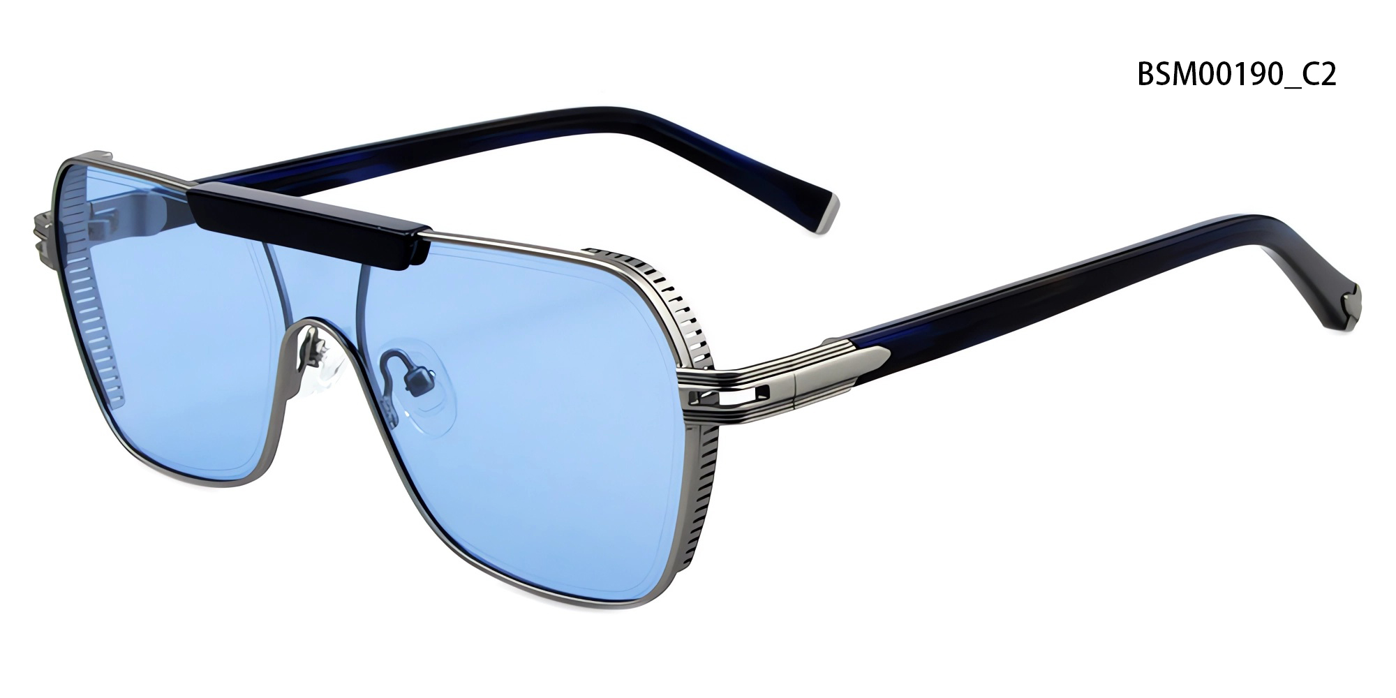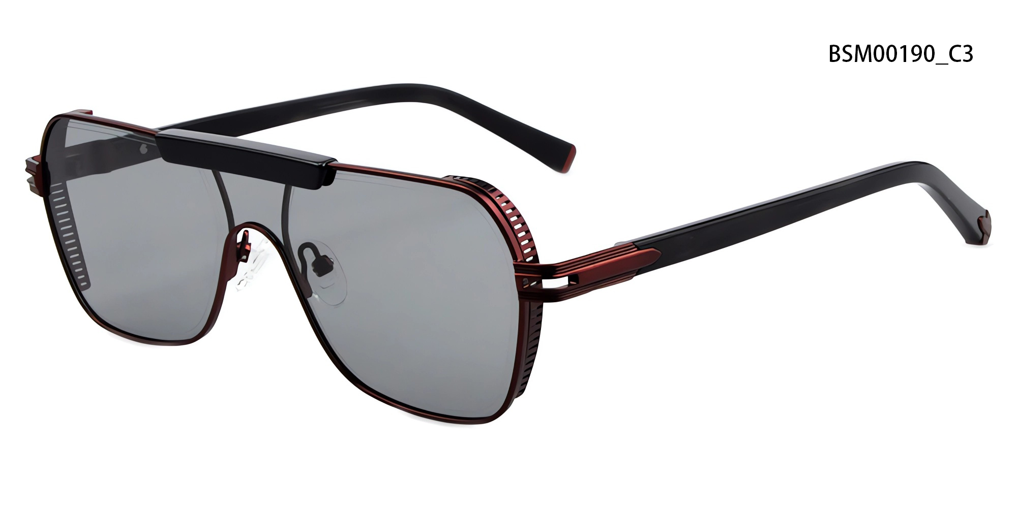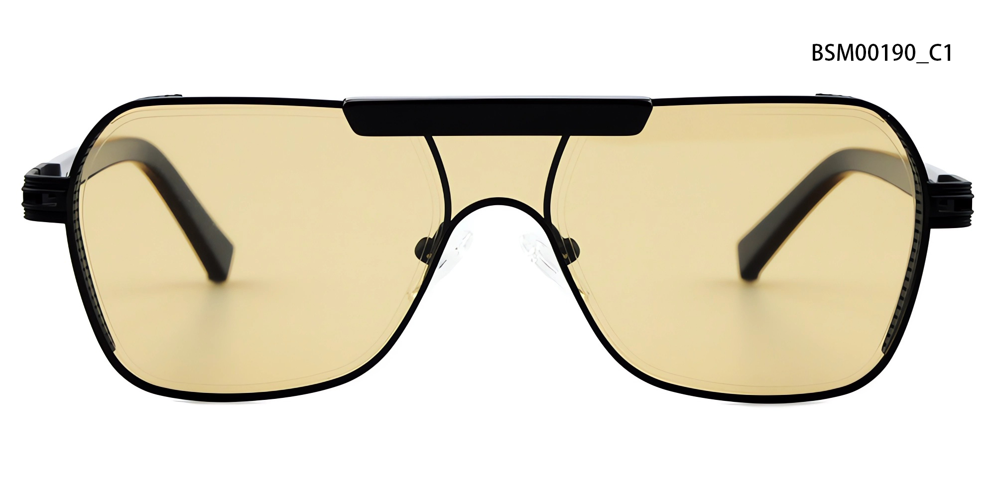 This bold shield-style sunglass stands out with its distinctive flat-top design and geometric lens shape. Featuring a sleek, contemporary silhouette and refined structural detailing, it blends fashion-forward aesthetics with a sporty edge. A perfect statement piece for trendsetters.